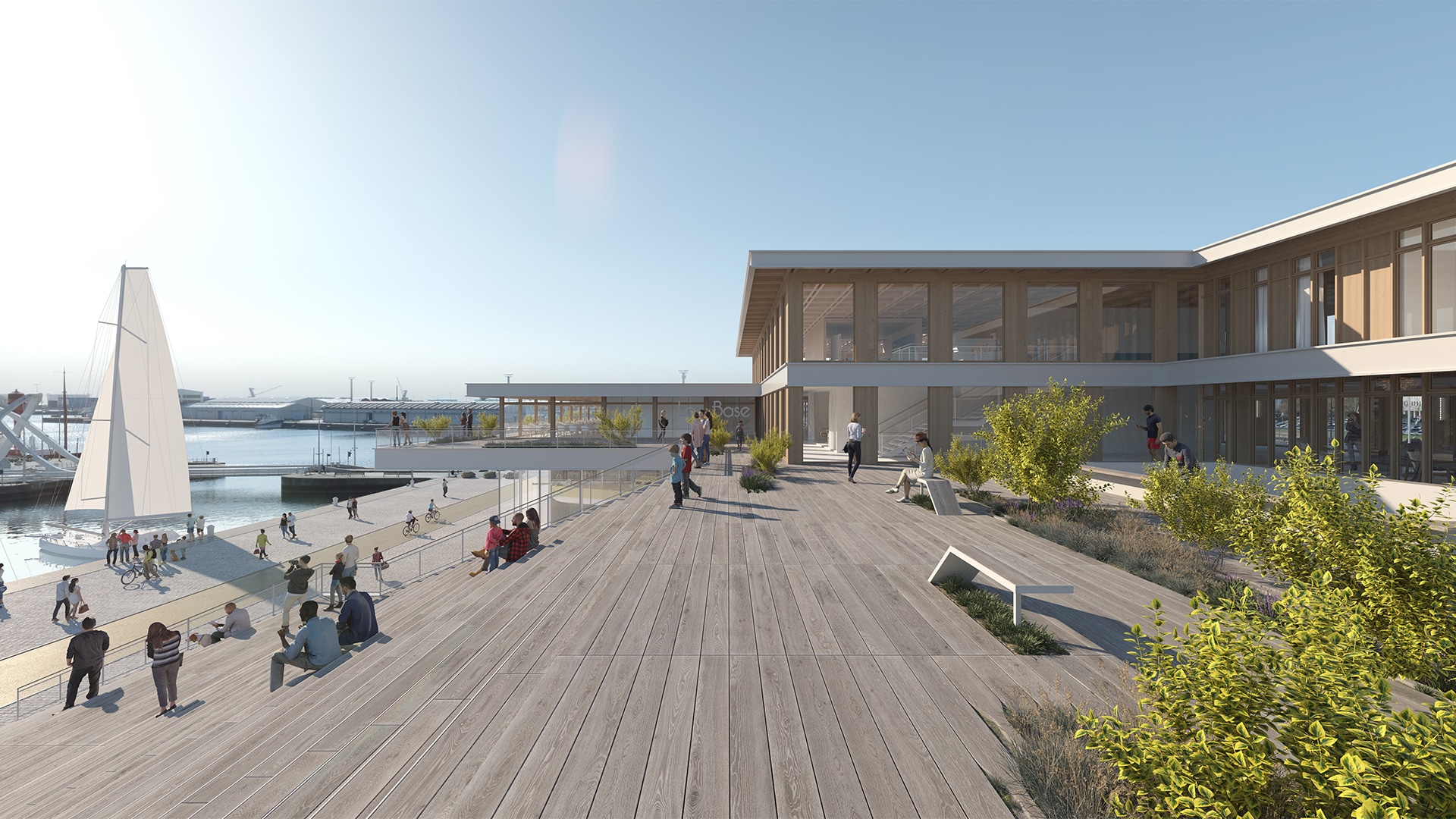 In addition to its legendary light, its taste for modernist architecture and its downtown harbor, Le Havre is a real stronghold of boating. As early as 1993, it organized the very first Coffee Route, which became the Transat Jacques Vabre. Our project clings to this nautical culture: we are creating a place open to the city and the sea that will attract the finest sailing and gliding professionals and, in its wake, amateurs, families and students in search of emotions, spectacle and activity in the open air and in the breeze.